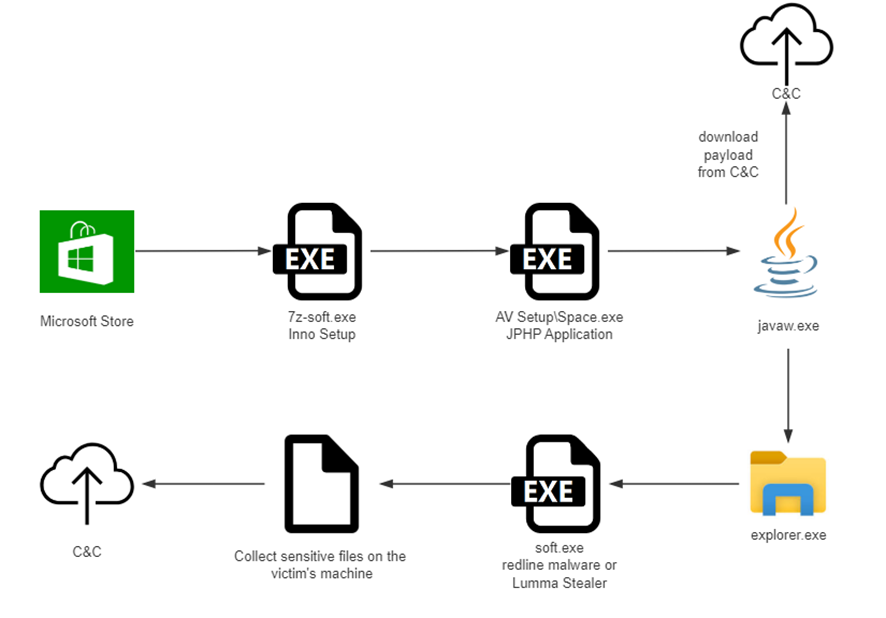攻击者为了保持长时间的免杀在其C2服务器上频繁更新payload,我们一天能请求到2-3个MD5不同的soft.exe,主要目的是窃取受害机器上的txt、doc、rdp、key、wallet、seed、lnk等类型的文件,所涉及的家族为redline malware、Lumma Stealer、Amadey。