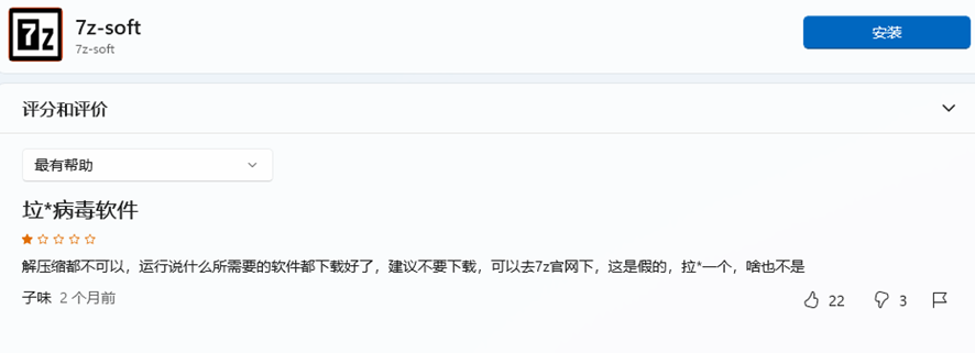 这也是为什么在一款俄语的恶意安装包上的差评竟由中文用户提交,这看起来很讽刺但这就是目前国内软件下载的糟糕生态。