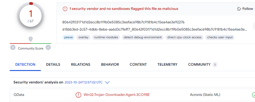 通过溯源发现该安装包最早出现于2023年一月份,几乎免杀了一整年。我们内部将该团伙命名为UTG-Q-003,并将该事件细节和IOC公开给开源社区,供友商分析排查。