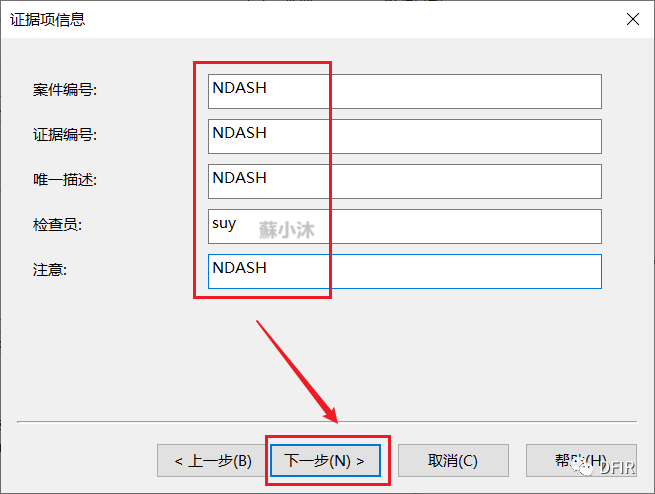 案件编号、证据编号、唯一描述、检查员、备注(全部都是非必填项);