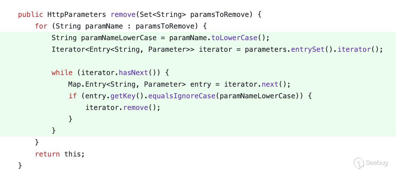 首先看一下补丁对比[3],根据官方描述和补丁对比,漏洞发生在文件上传部分,且补充了remove功能,使其能够忽略大小写并移除重复的键值,如图32: