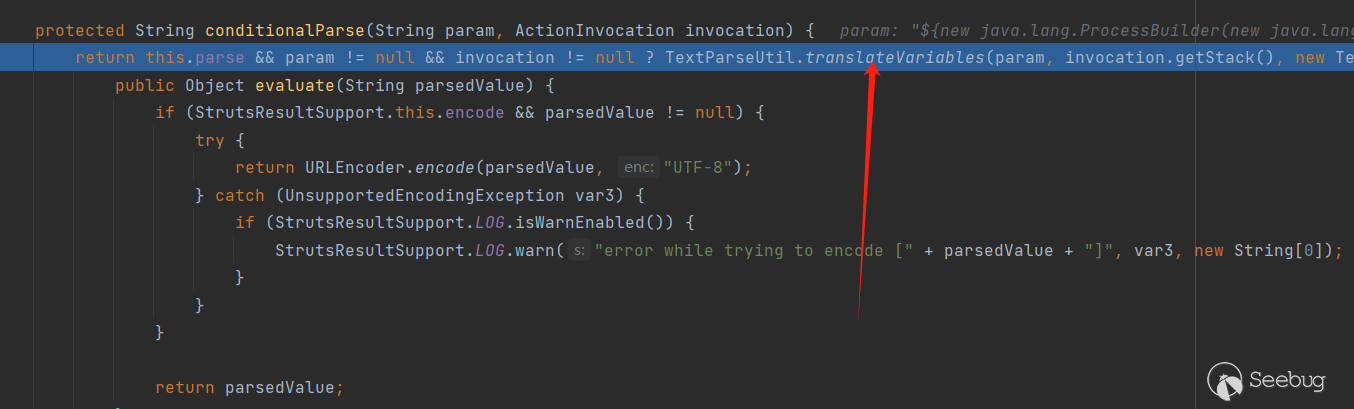 上文中提到过TextParseUtil.translateVariables会造成OGNL解析,不再赘述,这里可用的payload为: