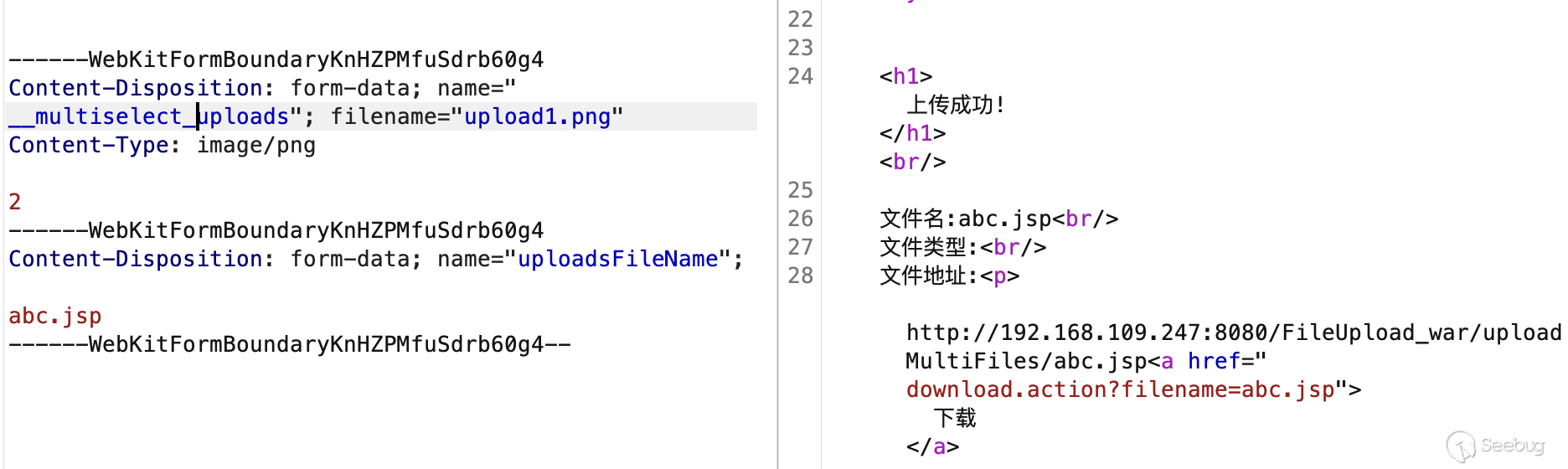 首先注意到这几个参数同时出现在map中,而uploads参数是可控的。这表明可以直接构造传递uploadsFileName和uploadsContentType来控制这两个值。然而,经过实质性的测试后发现,这并未改变文件名。