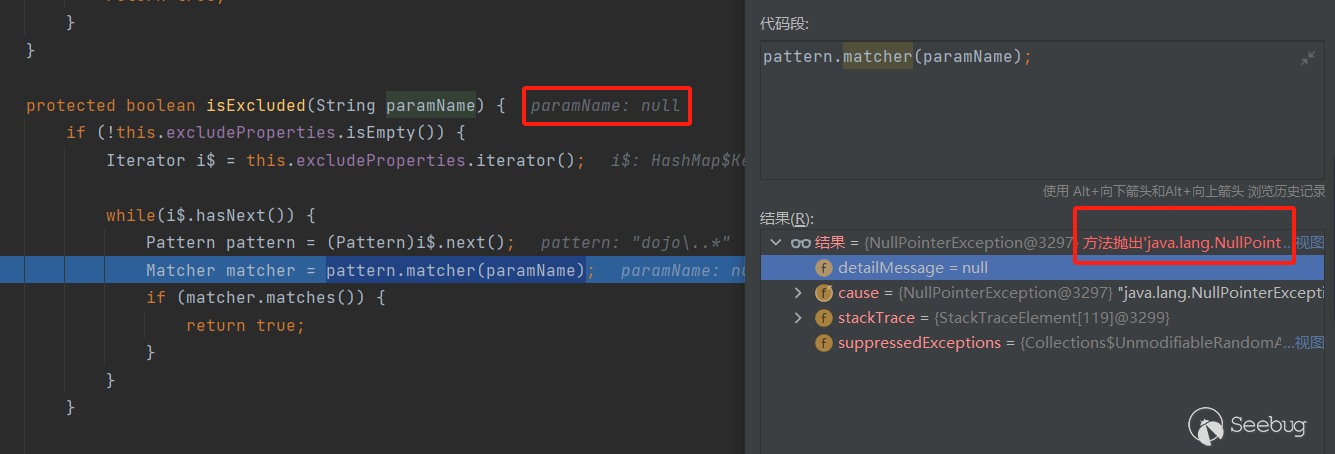 为了继续执行,需要将 this.excludeProperties 设置为空,以防止其进入 if 结构。那么如何修改 this.excludeProperties 的值呢?