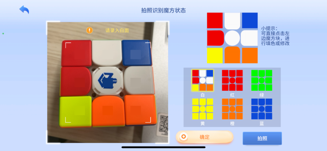 第二步:拍照识别魔方现在的状态完成同步 ,点击虚拟魔方-快速复原。