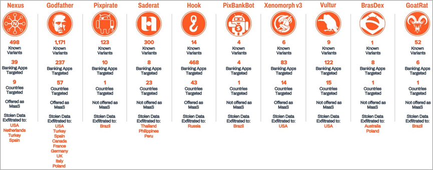 2023年出现了10个新的Android银行恶意软件家族,这些恶意软件共同攻击了来自61个国家或地区金融机构的985个银行和金融交易应用程序。