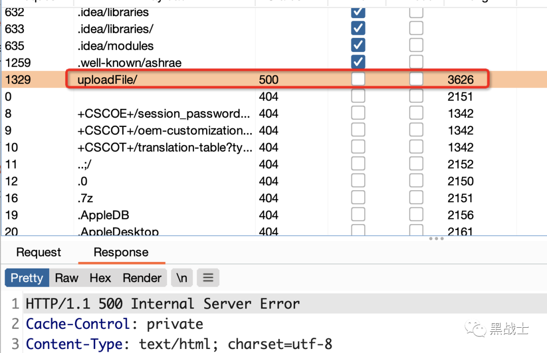 但是返回的链接直接拼接到url上并不是正确的shell路径,于是本着大力出奇迹的原则,开始爆破webshell的路径,可以先选择一些常用的上传文件的接口路径进行爆破
