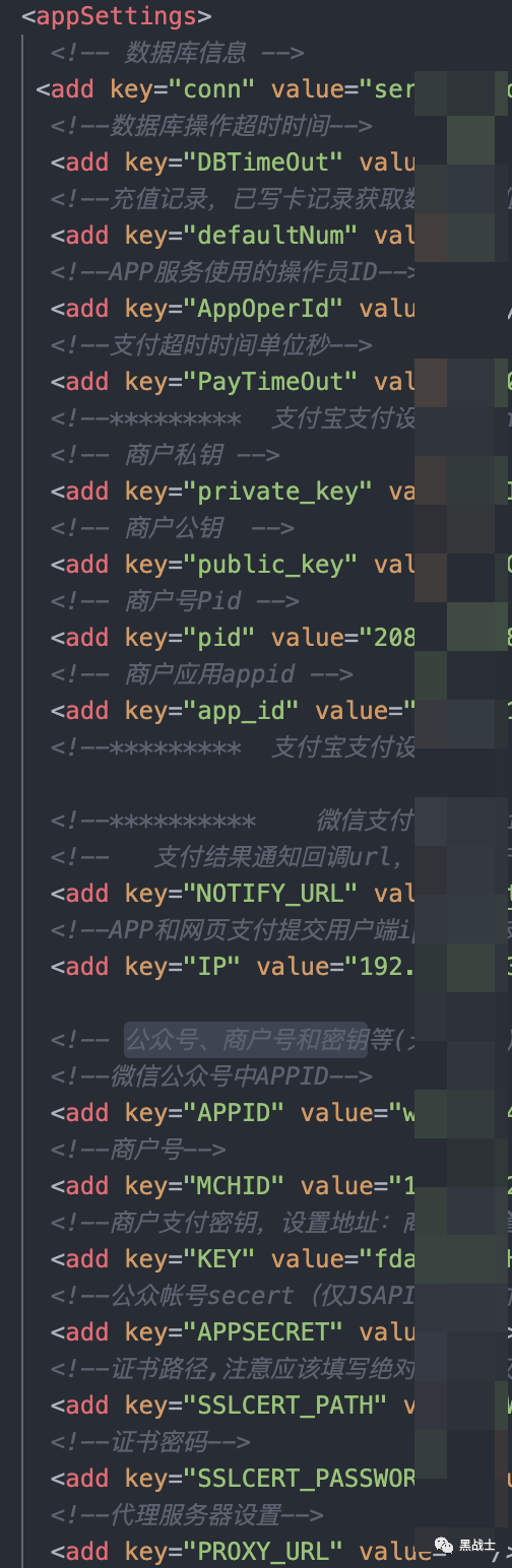 1、在Web.config文件中获取到了微信和支付宝支付的接口信息