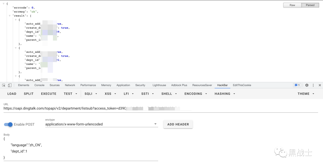 然后有了token,能够获取的数据就有很多了,这里只演示一下获取部门列表,根据官方API手册,获取部门列表