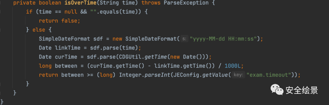 再然后对time有一个判断,跟进isOverTime方法,其实就是判断当前是否超时,这里绕过只需要传入的时间比现在大即可。