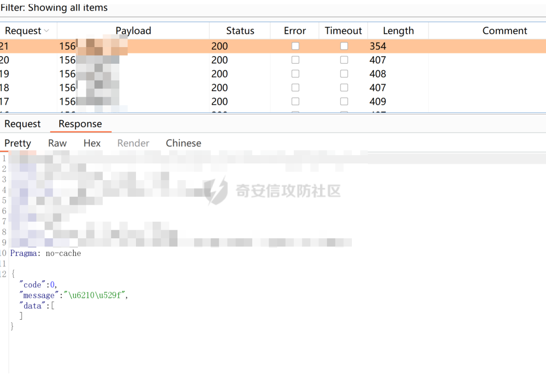 不停点击repeter或者放到intruder里面,就可以实现一个手机号接收到多条短信