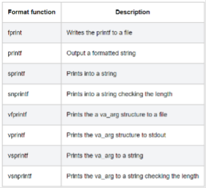 下表给出了经常用于这种攻击中的一些格式函数。