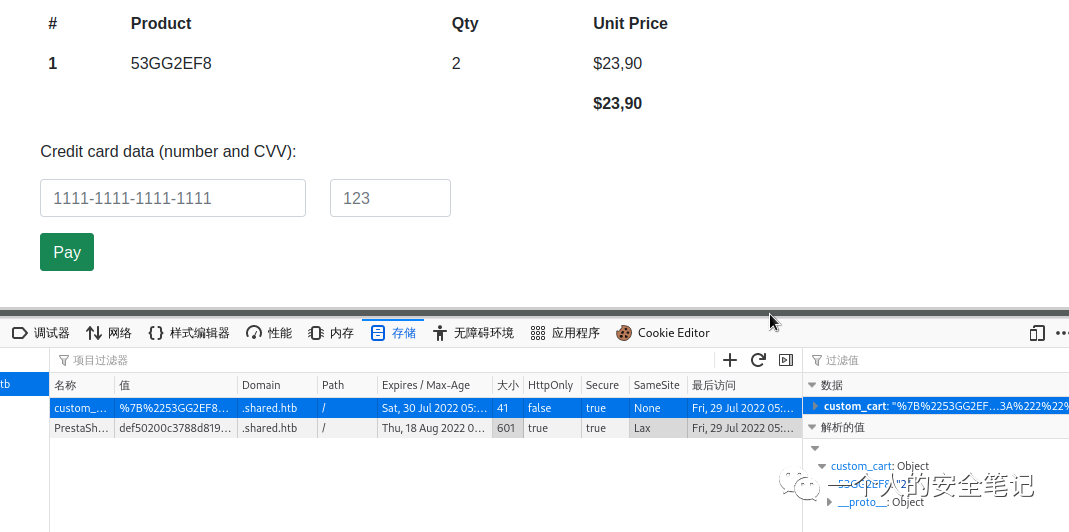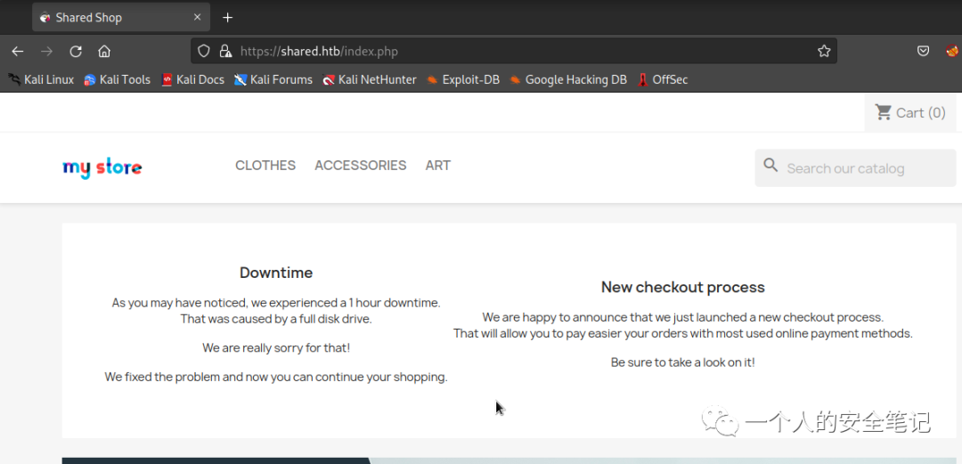 简单浏览下功能, 能在购物车页面下发现新的二级域名 checkout.shared.htb