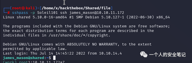 成功使用 Soleil101 口令密码成功登录服务器,拿到立足点。