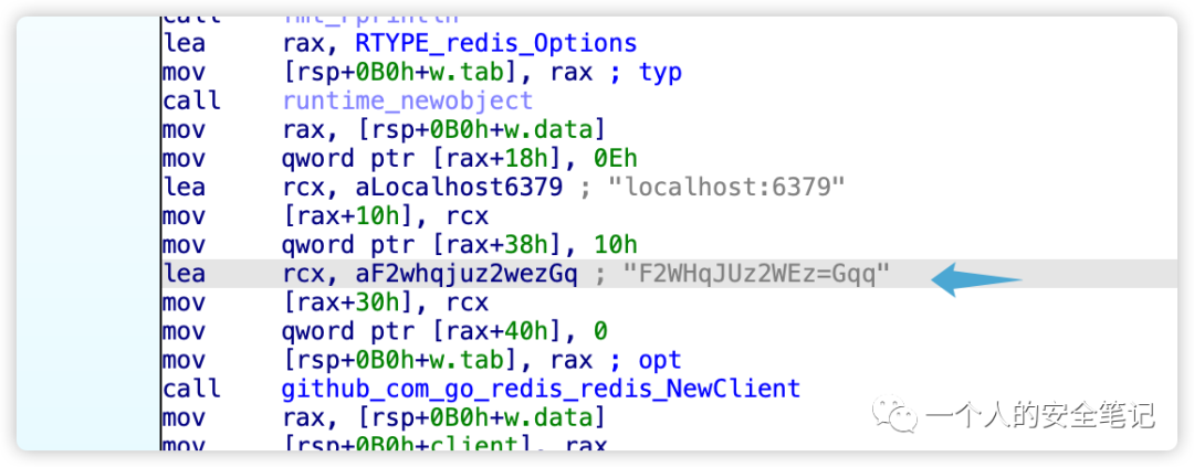 简单执行该二进制程序发现输出了 redis info 详情,直接连接是需要口令的 NOAUTH Authentication required。将文件下载到 kali 上进行分析,使用 DiE 查壳能获知是 go amd64 程序,接着使用 IDA 载入后查看发现 Redis 连接密码 F2WHqJUz2WEz=Gqq。