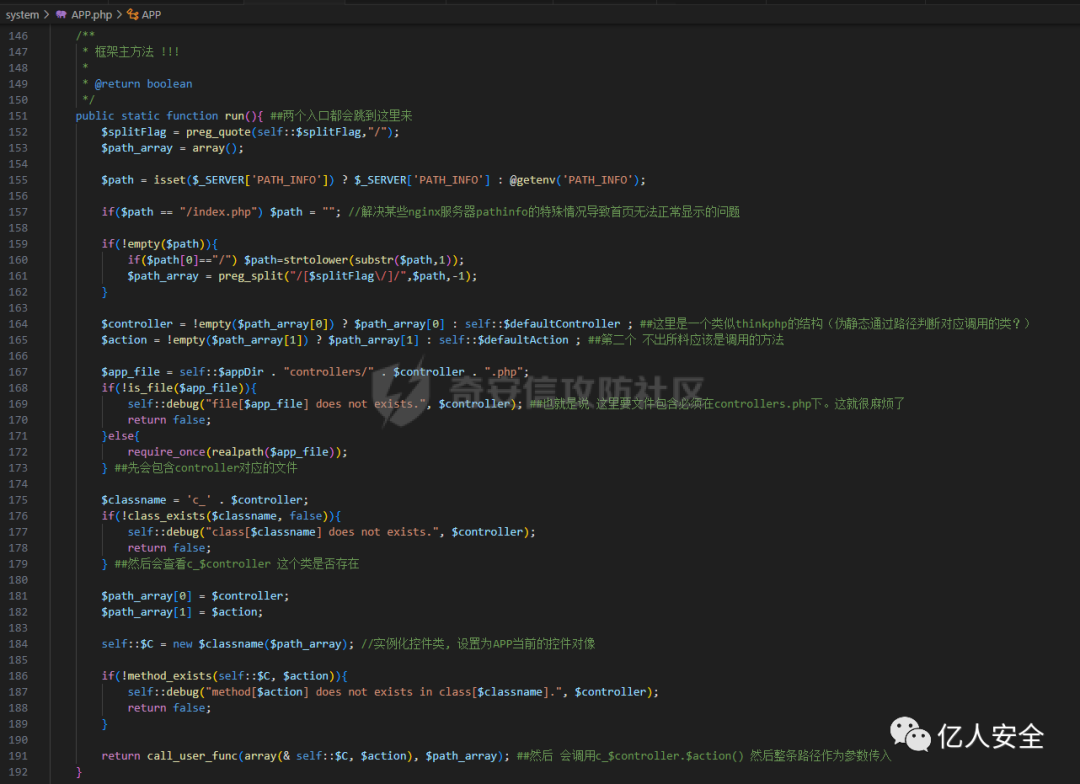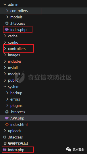很常见的路径转方法(伪静态?),如/index.php/[controller]/[action]/[arag1]/[arg2]。但由于其控制器分别在controllers和admin/controllers下,而访问控制脚本的函数使用的是不可控变量,所以不能通过普通控制器入口访问管理员的控制器。