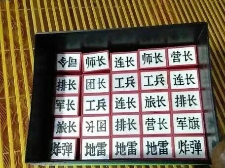 1、分别将25个棋子立起背朝对方(即有字的一面向自己),根据玩家的策略及棋盘规则摆放在棋盘兵站和大本营位置;