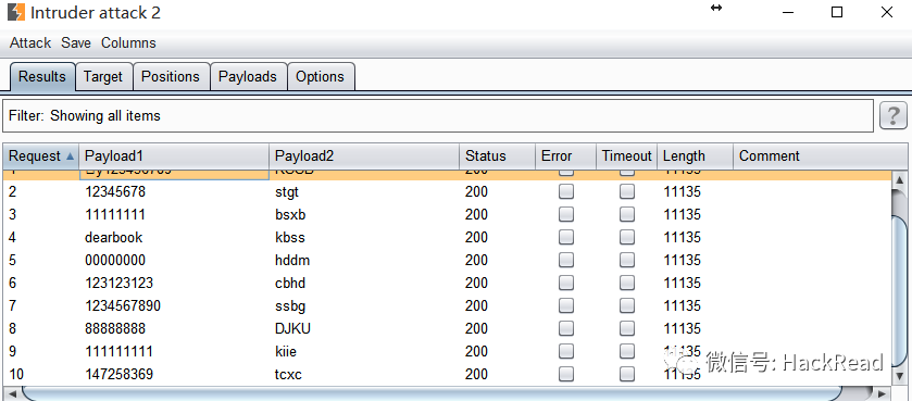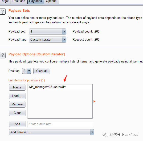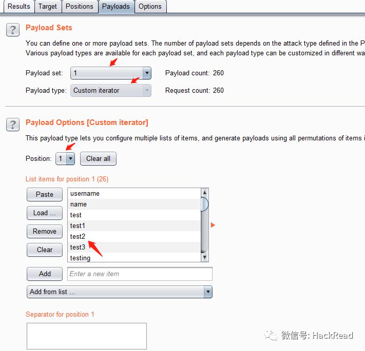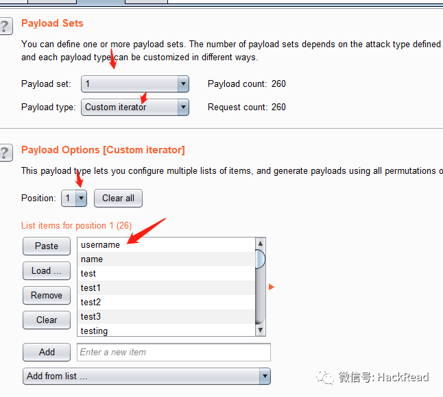 payload 1 使用“自定义迭代器(Custom interator)”。并在迭代器中组合用户名和密码。