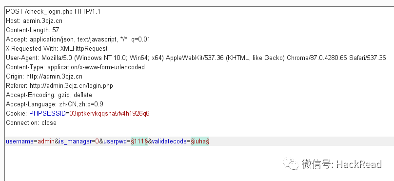 比如,已知系统存在一个用户admin,来爆破该用户的密码,插入点标记如下