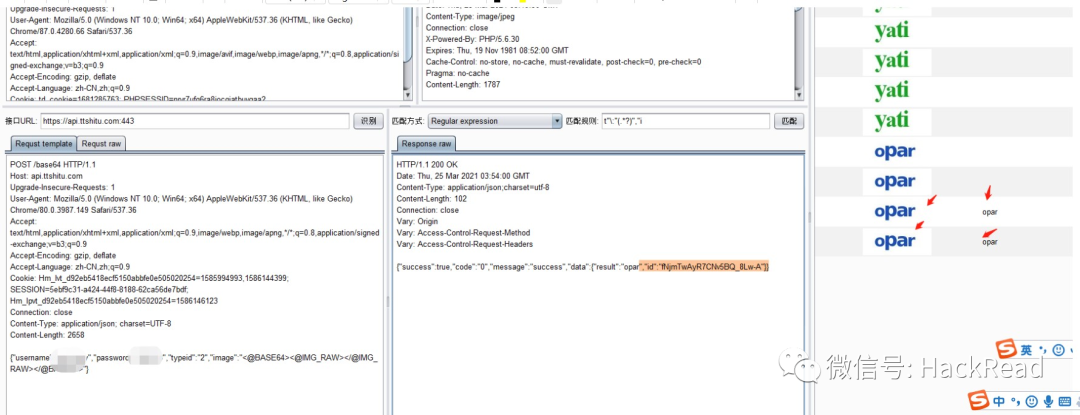 POST /base64 HTTP/1.1Host: api.ttshitu.comUpgrade-Insecure-Requests: 1User-Agent: Mozilla/5.0 (Windows NT 10.0; Win64; x64) AppleWebKit/537.36 (KHTML, like Gecko) Chrome/80.0.3987.149 Safari/537.36Accept: text/html,application/xhtml+xml,application/xml;q=0.9,image/webp,image/apng,*/*;q=0.8,application/signed-exchange;v=b3;q=0.9Accept-Encoding: gzip, deflateAccept-Language: zh-CN,zh;q=0.9Cookie: Hm_lvt_d92eb5418ecf5150abbfe0e505020254=1585994993,1586144399; SESSION=5ebf9c31-a424-44f8-8188-62ca56de7bdf; Hm_lpvt_d92eb5418ecf5150abbfe0e505020254=1586146123Connection: closeContent-Type: application/json; charset=UTF-8Content-Length: 2658{"username":"xxx","password":"xxxxx","typeid":"2","image":"<@BASE64><@IMG_RAW></@IMG_RAW></@BASE64>"}