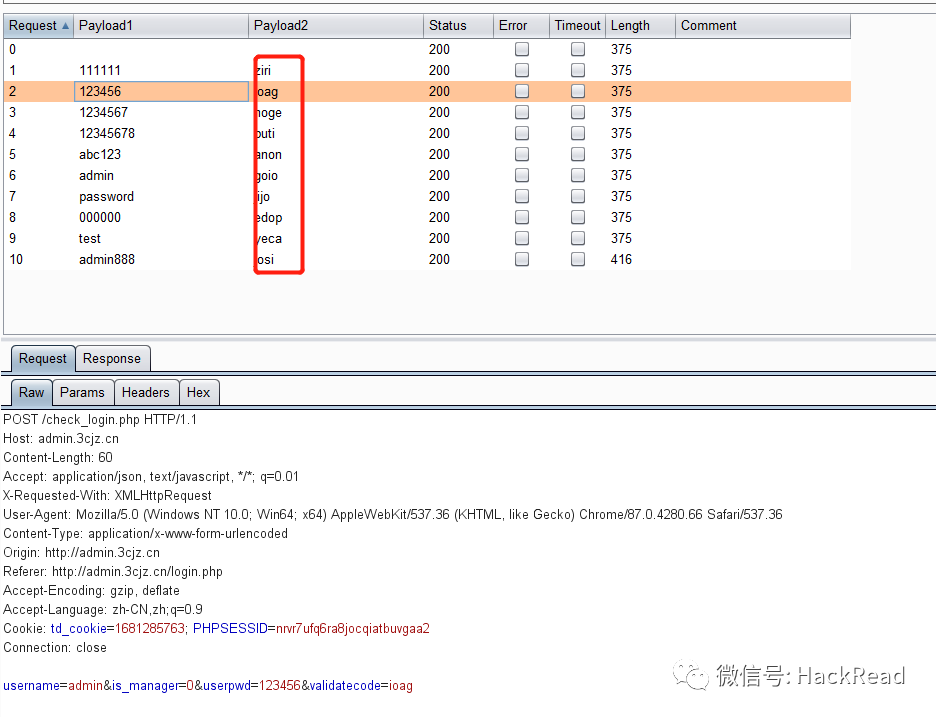 在该例子中,即 position 1为用户名,postion 3为密码。