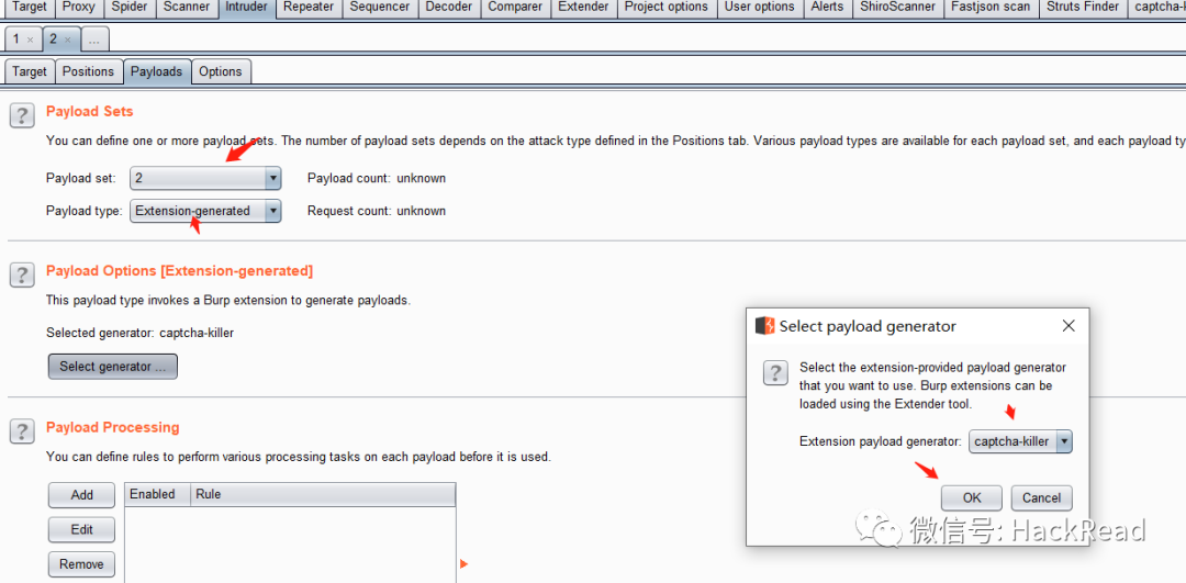 payload 2 选择“Extension-Generated”--captcha-killer插件