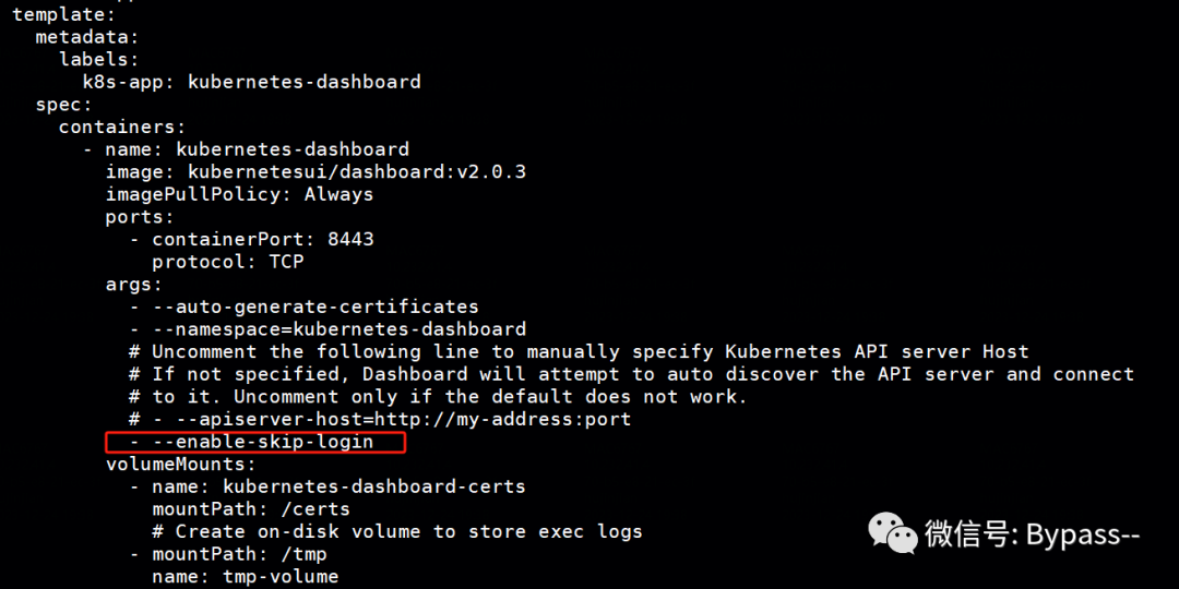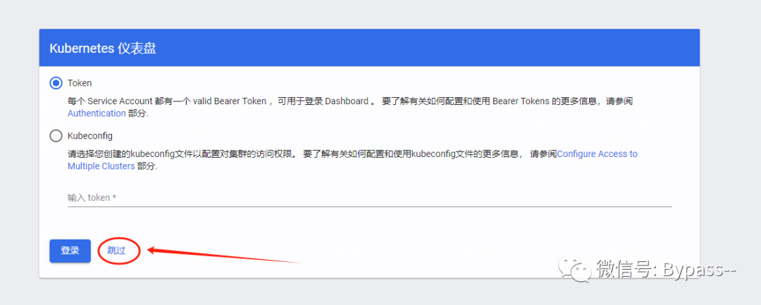 在deployment中开启enable-skip-login,那么就可以在登录界面点击跳过登录进dashboard。