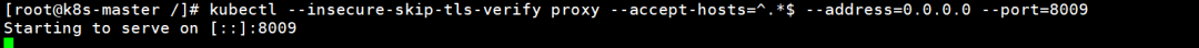 kubectl --insecure-skip-tls-verify proxy --accept-hosts=^.*$ --address=0.0.0.0 --port=8009
