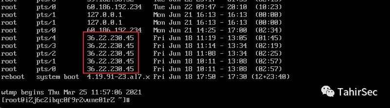 执行last命令获得登录IP地址。