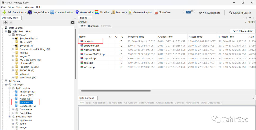 使用Autopsy文件分析,压缩包分类中存在index.rar。