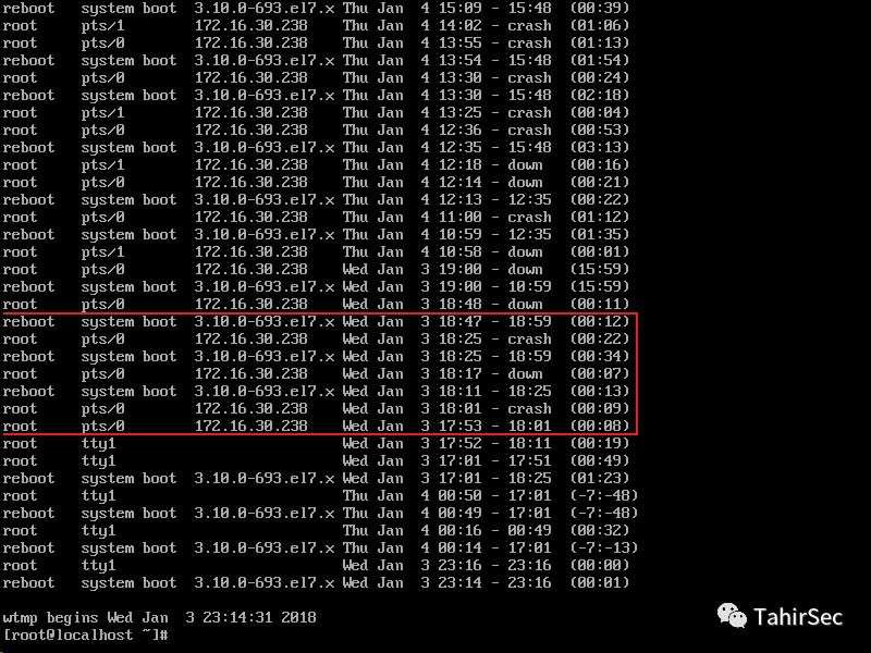 检材3是VMware完整虚拟机文件,可以直接用VMware Workstation导入虚拟机。打开发现是CentOS系统,盲猜用户密码为root/123456,登录成功。last命令查看最近一次远程登录的IP地址。