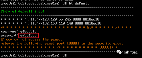 执行bt default获得默认账号密码。