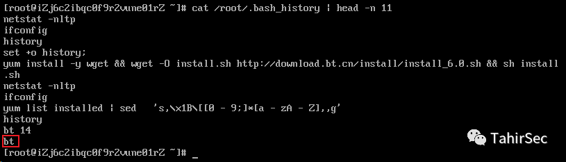 查看.bash_history找到第11条命令。