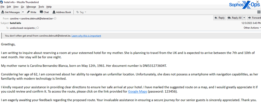 情报来源:https://news.sophos.com/en-us/2023/12/19/inhospitality-malspam-campaign-targets-hotel-industry/