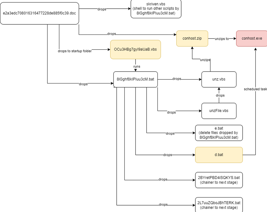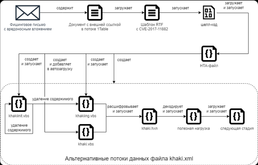 起点是一个带有引诱文档的钓鱼邮件,该文档利用微软 Office 的公式编辑器(Equation Editor)中存在六年之久的内存损坏漏洞 CVE-2017-11882,启动恶意有效载荷的执行。