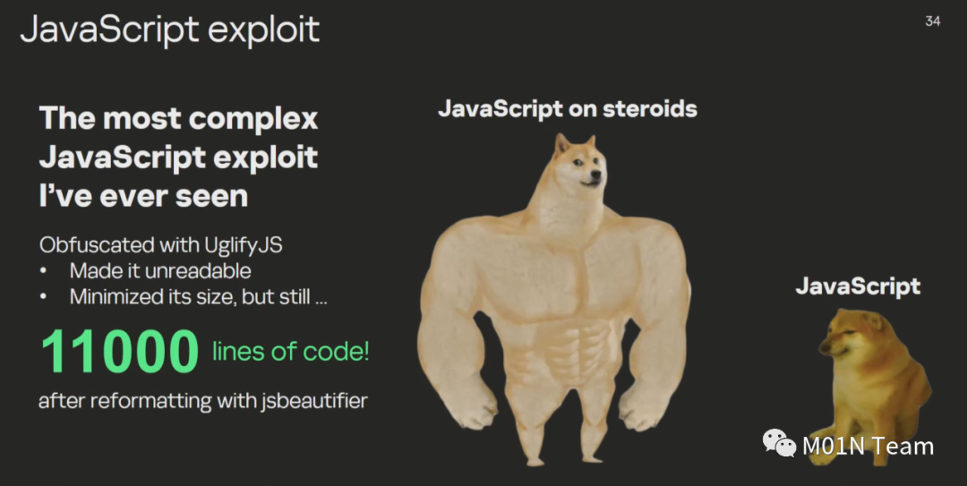 根据卡巴基斯研究人员披露,在利用CVE-2023-41990实现JavaScript代码执行后,攻击者编写了一个大约11000行经过混淆的恶意JavaScript代码。