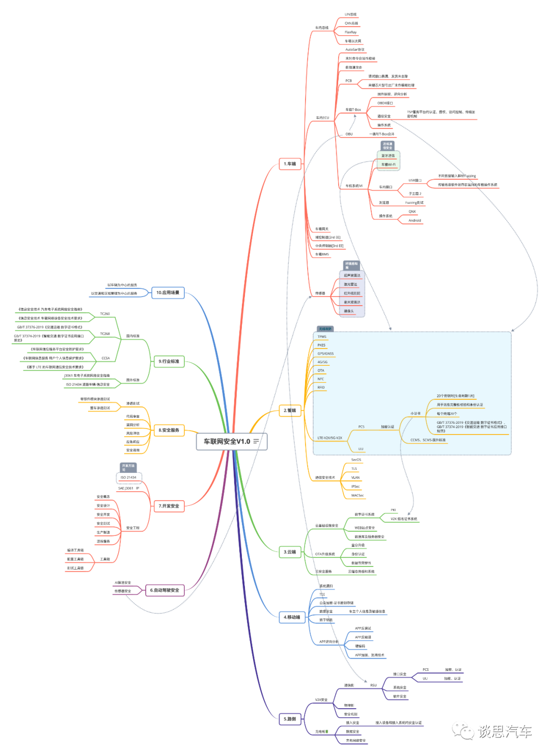如需获取车联网安全思维导图高清版,可关注“谈思实验室”公众号,后台回复“思维导图”。