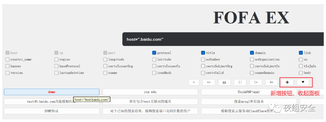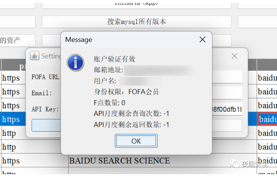 FOFA EX 是一款基于 fofa api 实现的简洁美观的 Java 客户端,集成了 fofa 官方的四十个 api 接口,增加搜索数量调整、翻页、iconHash生成、搜索耗时统计、当前用户个人账户信息查询等功能,查询结果可实施编辑与表内搜索,可进行导出;增加快捷语法编辑记录功能,可将收录的语法进行保存与快捷输入;右键支持当前搜索结果一键打开链接等功能。后续集成fofa-hack等工具,实现免账号获取数据。