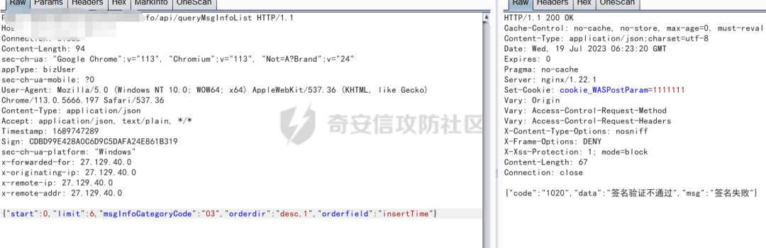 验签了,碰到验签,按经验来说,盲猜是sign这个头。Fuzz一下,Sign去掉后报错,不能为空!