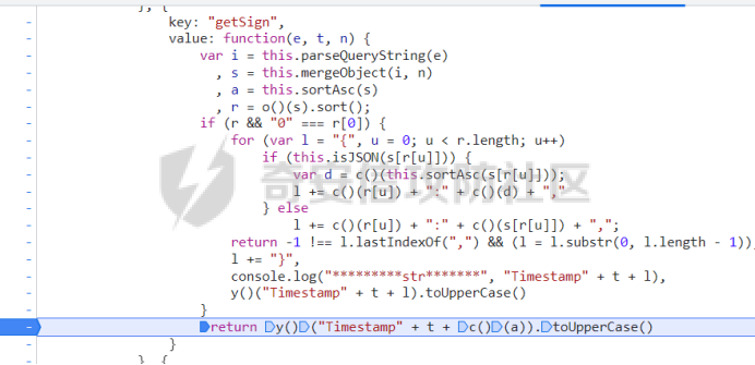 打上断点,成功命中!(如果没有命中的话,可以在network中搜索请求的url关键字,看一下调用栈,找一下sign生成点函数)