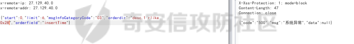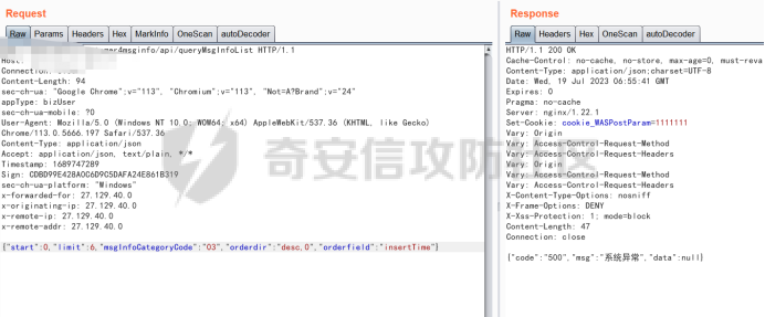 查看排序注入是否存在,直接重放接口,返回正常