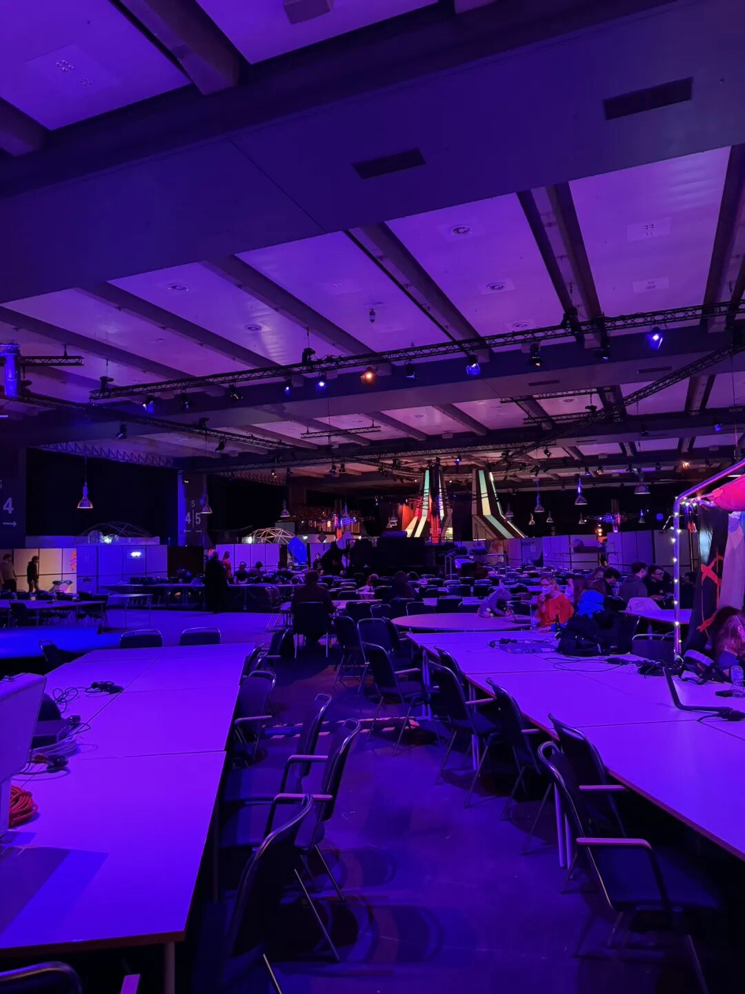 于其他会议一个显著的区别是,在 ccc 可以提前预定好位置(工位),没有讲座的时候也可以一堆人围坐在一起闲聊,或者来一场 hackerthon。