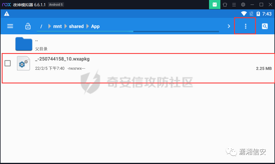 打开文件管理器,在data/data/com.tencent.mm/MicroMsg会生成一个md5加密命名的文件夹(如果打开微信小程序过多,同时有多个文件夹不容易识别的情况,可以选择把MicroMsg文件夹所有内容删除掉,再去重新打开微信小程序,就会得到唯一一个MD5加密命名的文件夹啦)在该文件夹下的appbrand/pkg目录下找到.wxapkg后缀结尾的文件,其中只有几MB大小的为刚刚打开的小程序的文件点击勾选之后,来到根目录下的mnt/shared/App目录,打开右上角三个.的功能菜单选择粘贴选择项,将文件复制到该文件夹这里的文件夹就是电脑共享的文件夹,点击打开电脑文件夹https://github.com/ezshine/wxapkg-convertor/releases