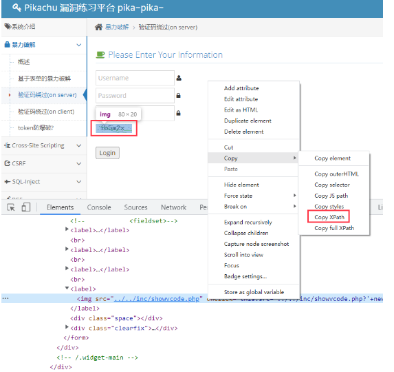{"url": "http://192.168.86.226/pikachu-master/vul/burteforce/bf_server.php",//目标地址url"user_xpath": "//*[@id=\"main-container\"]/div[2]/div/div[2]/div/div/form/label[1]/span/input",//用户名输入登录框"pass_xpath": "//*[@id=\"main-container\"]/div[2]/div/div[2]/div/div/form/label[2]/span/input",//密码输入登录框"orc_input_xpath": "//*[@id=\"main-container\"]/div[2]/div/div[2]/div/div/form/label[3]/span/input",//验证码输入登录框"orc_xpath": "//*[@id=\"main-container\"]/div[2]/div/div[2]/div/div/form/label[4]/img",//验证码"login_button_xpath": "//*[@id=\"main-container\"]/div[2]/div/div[2]/div/div/form/div[2]/label/input",//登录按钮"orc_res_xpath": "//*[@id=\"main-container\"]/div[2]/div/div[2]/div/div/p"//登录结果}