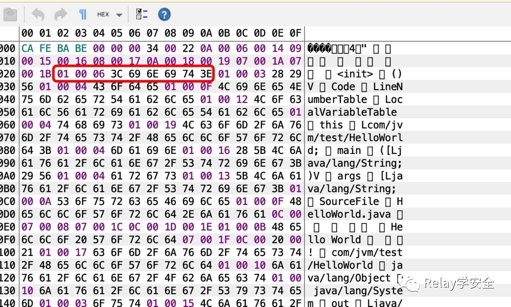 所以这里的01 00 06 3C 69 6E 69 74 3E 表示的就是我们的字符串。这里的06表示的是我们字符串的长度,所以需要划分三个u1来表达。