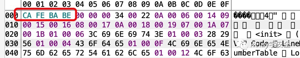 CA FE BA BE 表示魔数,其实意思就是Java Class文件的一个标识,主要目的是为了让Java虚拟机识别,并且安全。让Java虚拟机觉得你这个Class文件是可以识别的。