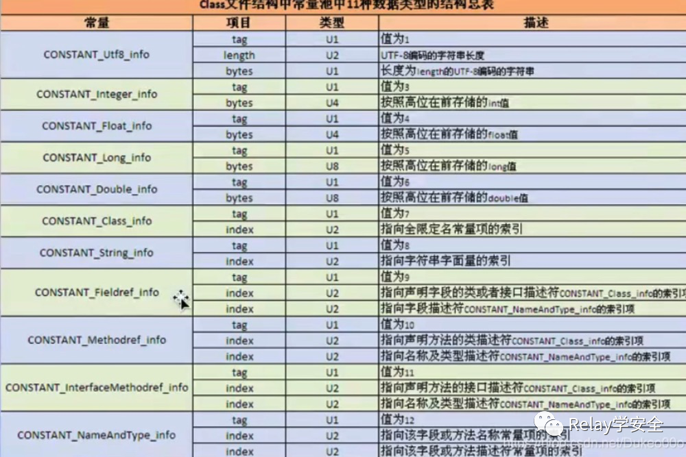 可以参考类似这样的表: 这里看到这里的tag的值代表的就是几项,我们上面的09表示第九项,也就是CONSTANT_Fieldref_info