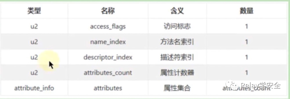 method表中的每个成员都必须是一个method_info结构,用于表示当前类或借口某个方法的完整描述。