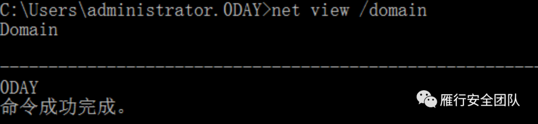 net view /domain(这个命令是查看所在域的名字,如果目标存在多个域,可以查看所有的域)